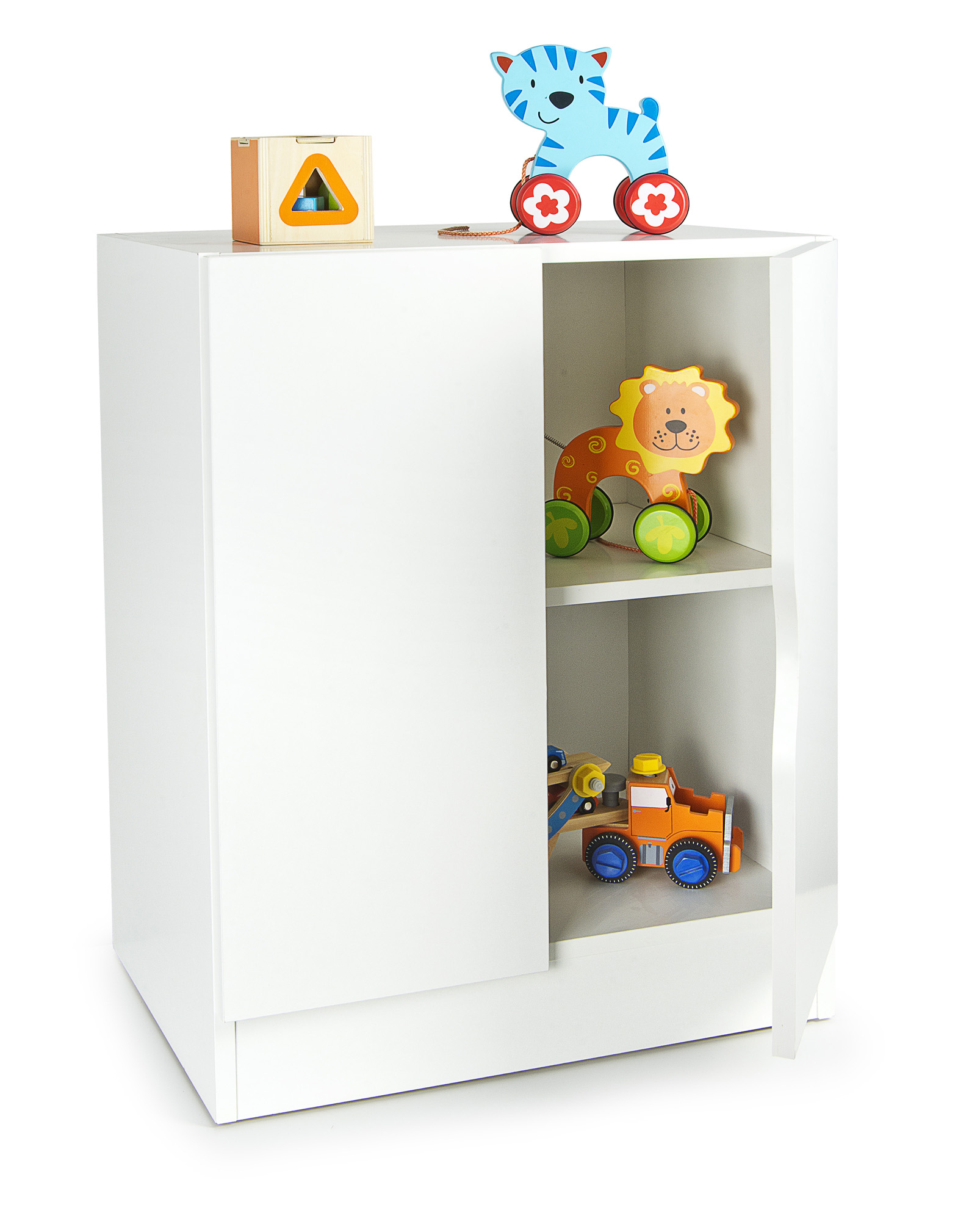 Mueble para guardar la ropa, juguetes u otros objetos personales. Hecha de los tablones de densidad media DM de 18 mm de grosor. En la serie Roma encontrarán también otros muebles: armario blanco de dos puertas, escritorio blanco, cajonera. Características: